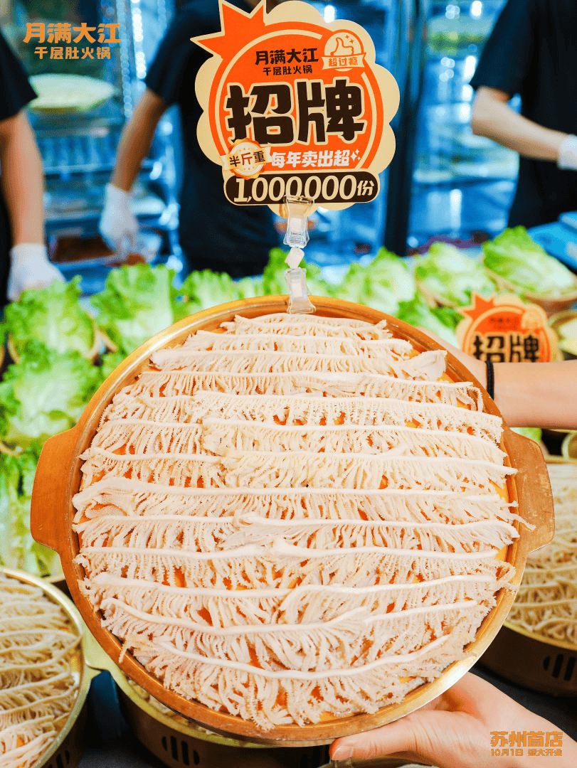 月满大江以千层肚为核心单品, 匠心打造品类标签, 成功地在竞争激烈的火锅市场中树立了独特的差异化价值。坚持选用优质食材。