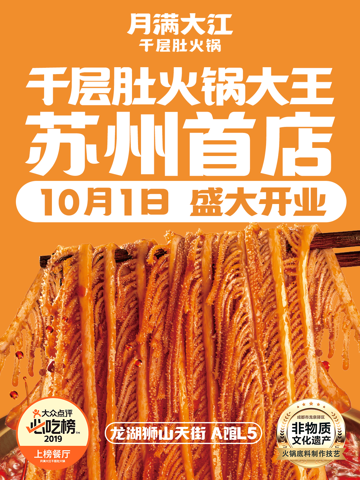 备受瞩目的川渝火锅标杆品牌「月满大江」宣布其苏州首店-狮山天街店于10月1日盛大开业。